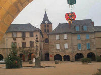 Villefranche de Rouergue, 20km from Le Bouyssou, must be as close as you can get to what a French provincial town used to be like. It lies on the bend of the river Aveyron, built as a bastide by Alphonse de Poitiers in 1252, the town became rich on copper from the surrounding mines and its privilege of minting coins. From the fifteenth to the eighteeth centuries, its wealthy men built the magnificent houses that grace the cobbled streets to this day. Place Notre-Dame, the lovliest bastide central square in the region, is built on a slope, so the uphill houses are much higher than the downhill and you enter at the corners underneath the buildings. All the houses are arcaded at ground floor level. The east side square is dominated by the church of Notre-Dame with its colossal porch and bell tower, nearly 60m high. The interior has some fine late fifteenth-century stained glass and carved choir stalls . The Thursday market is said to be one of the largest in France.