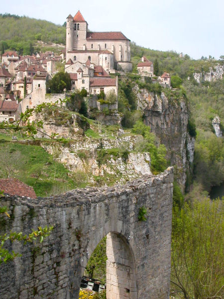 Peyrusse le Roc is approx 10km to the East from Le Bouyssou. By beautiful lanes across the causse you find one of the most remarkable old villages in this corner of France. The modern village sits astride the head of a narrow wooded valley, a tiny huddle of long-eaved, half- timbered houses abutting the ancient walls. In the valley below, hidden in the steep woods, lie the remains of a medieval stronghold, abandoned around 1700, that once stood guard over the silver-rich country round and about.